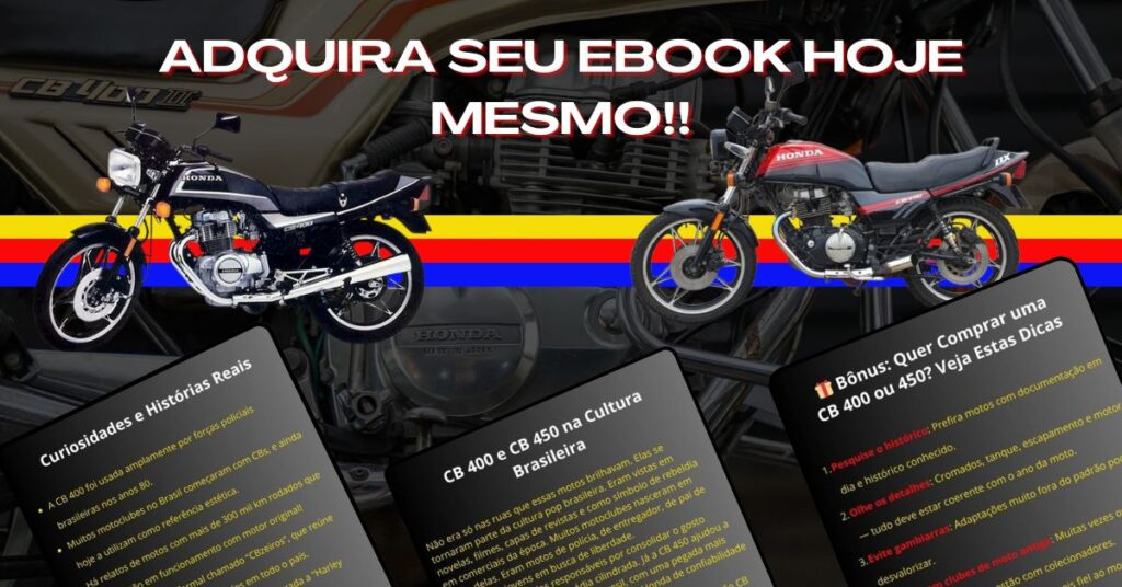 Este eBook foi criado com carinho, como um tributo às motos que marcaram gerações. E o valor simbólico de R$ 19,00 é só pra cobrir custos e ajudar a manter esse projeto vivo.