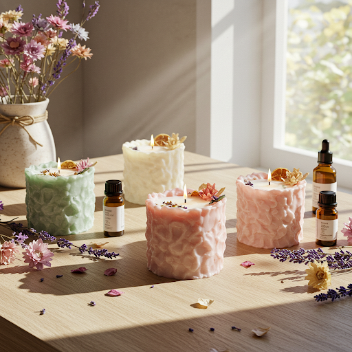 Além de perfumar, criam uma atmosfera aconchegante e acolhedora. Ideais para momentos de relaxamento ou jantares especiais. Velas com essências como lavanda, baunilha ou sândalo são perfeitas para ajudar a reduzir o estresse e melhorar a qualidade do sono.