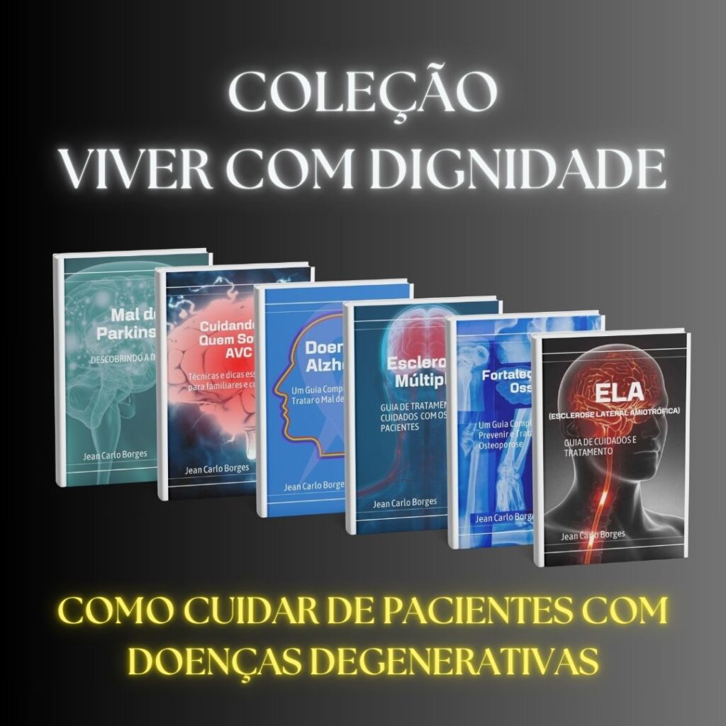 A Coleção Viver com Dignidade foi desenvolvida para orientar familiares, cuidadores e profissionais que convivem com pacientes portadores de doenças degenerativas, oferecendo informação clara, prática e humanizada. A coleção reúne 6 ebooks com orientações essenciais sobre como cuidar e conviver com pessoas diagnosticadas com Alzheimer, Parkinson, ELA (Esclerose Lateral Amiotrófica), Esclerose Múltipla, Osteoporose e AVC, abordando rotina de cuidados, adaptação do ambiente, comunicação, alimentação, mobilidade e apoio emocional. Além dos ebooks principais, a coleção inclui 2 bônus exclusivos: um Guia Prático de Exercícios Adaptados, pensado para manter a mobilidade e o bem-estar dentro das limitações de cada condição, e um Checklist de Cuidados Diários, que ajuda a organizar tarefas, evitar esquecimentos e garantir mais segurança e qualidade de vida tanto para o paciente quanto para o cuidador. É um material completo, sensível e indispensável para quem busca cuidar com mais consciência, respeito e dignidade.